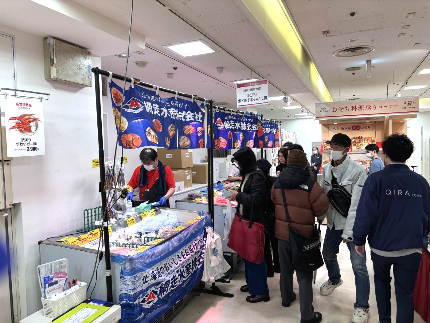 網走水産ならではのお買得で珍しい商品を6階催事場にて販売しております。