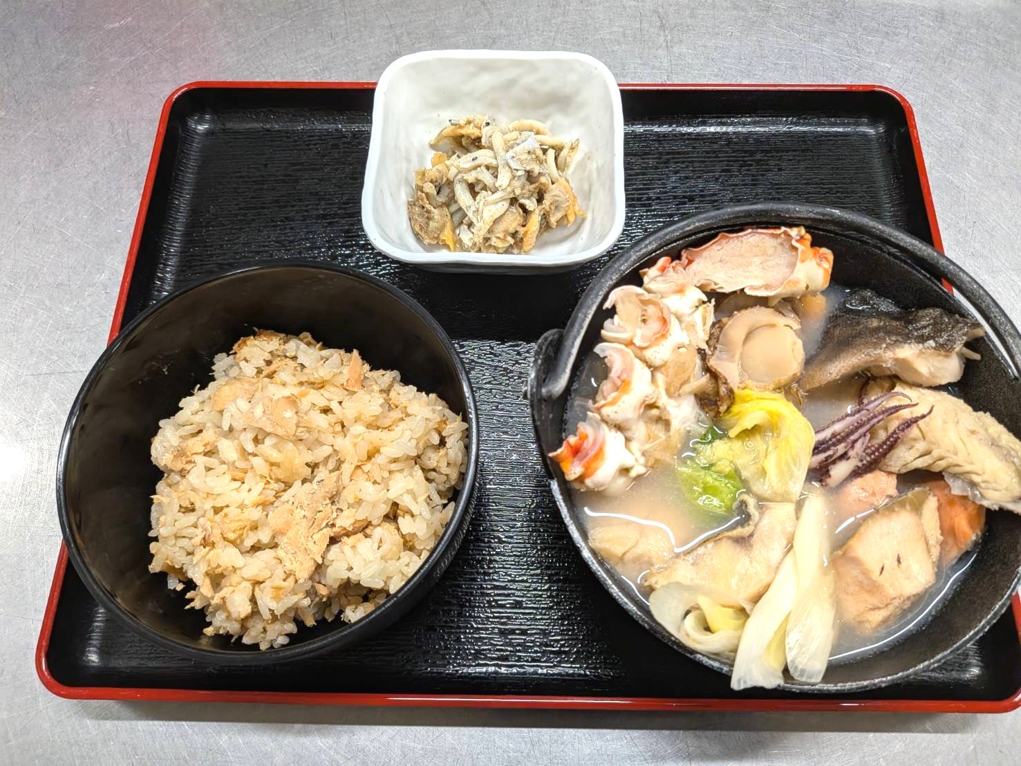 食堂ではカニ三昧の「こぼれカニめし丼」を、