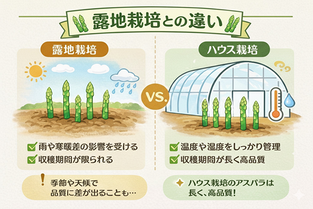 苦味・えぐ味のない美味しいアスパラで、栽培に手間がかかり傷みやすいので流通量が少なく値段も高価な貴重品です。
