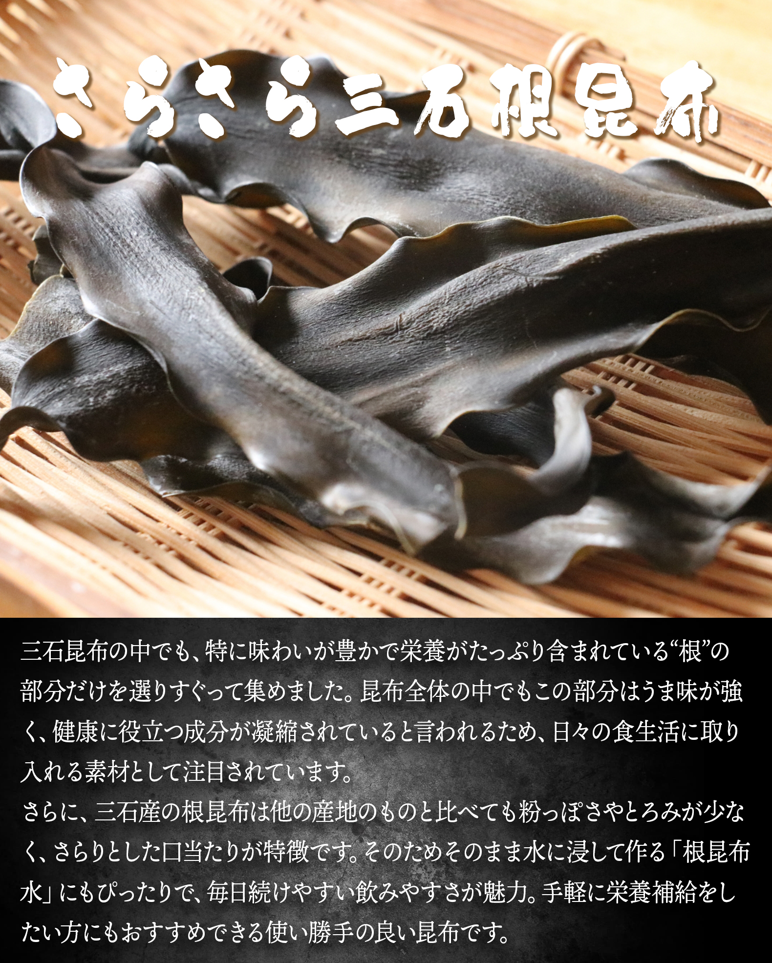 他の根昆布よりもさらさらしているため、非常に飲みやすく「根昆布水」に最適です。