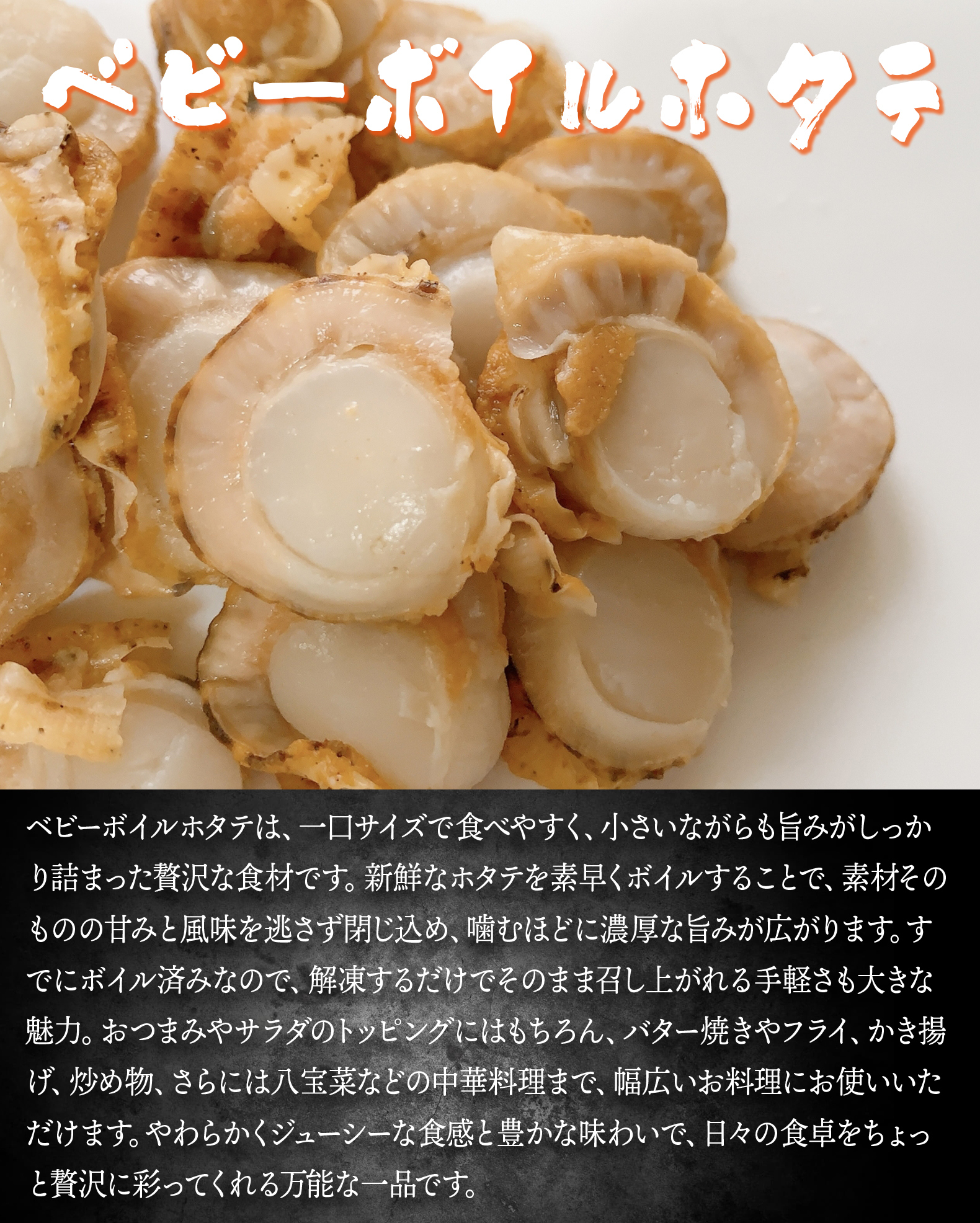 ジャンルを問わず様々なお料理に大活躍! 781 業務用ベビーボイルほたて 1s