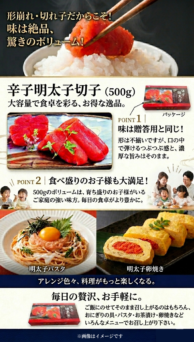 形崩れと切れ子なだけで、味は絶品という大変お得な明太子です。