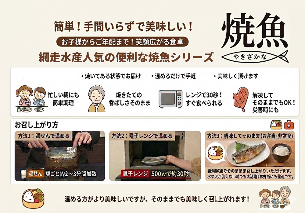 【温めるだけで食べられる便利な焼魚シリーズ】
