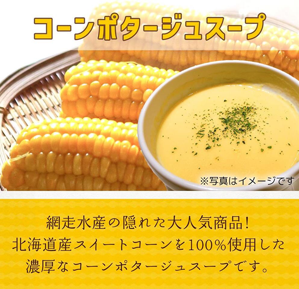 北海道産スイートコーンを100%使用した網走水産人気のコーンスープを50本、送料込でお届けします!