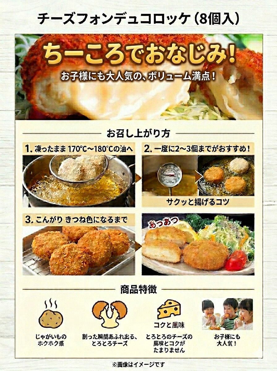 トロ〜リとろとろとあふれ出る熱々チーズが絶品 291(F291) チーズフォンデュコロッケ 8個入